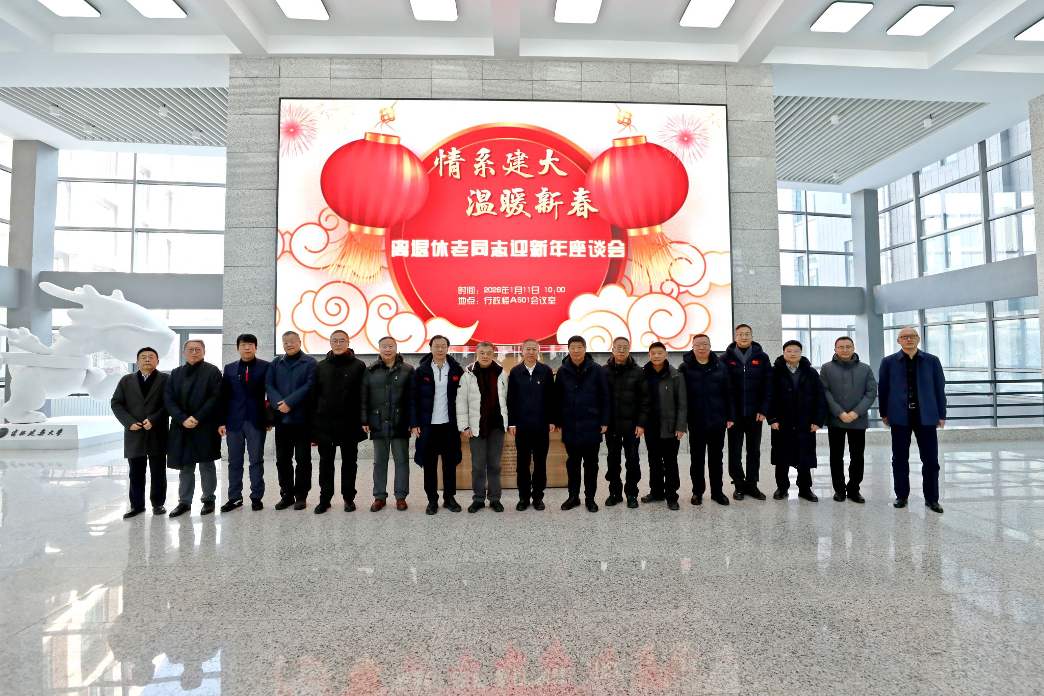 岁末情深,暖意盈怀;薪火相传,共话发展。1月11日,“情系建大·温暖新春”离退休教职工迎新年座谈会在行政楼A501会议室召开。学校领导班子成员、退休校级老领导及退休教师代表齐聚一堂,共叙建大情谊,共商发展大计。学校党委书记李雁冰主持座谈会并致辞。
