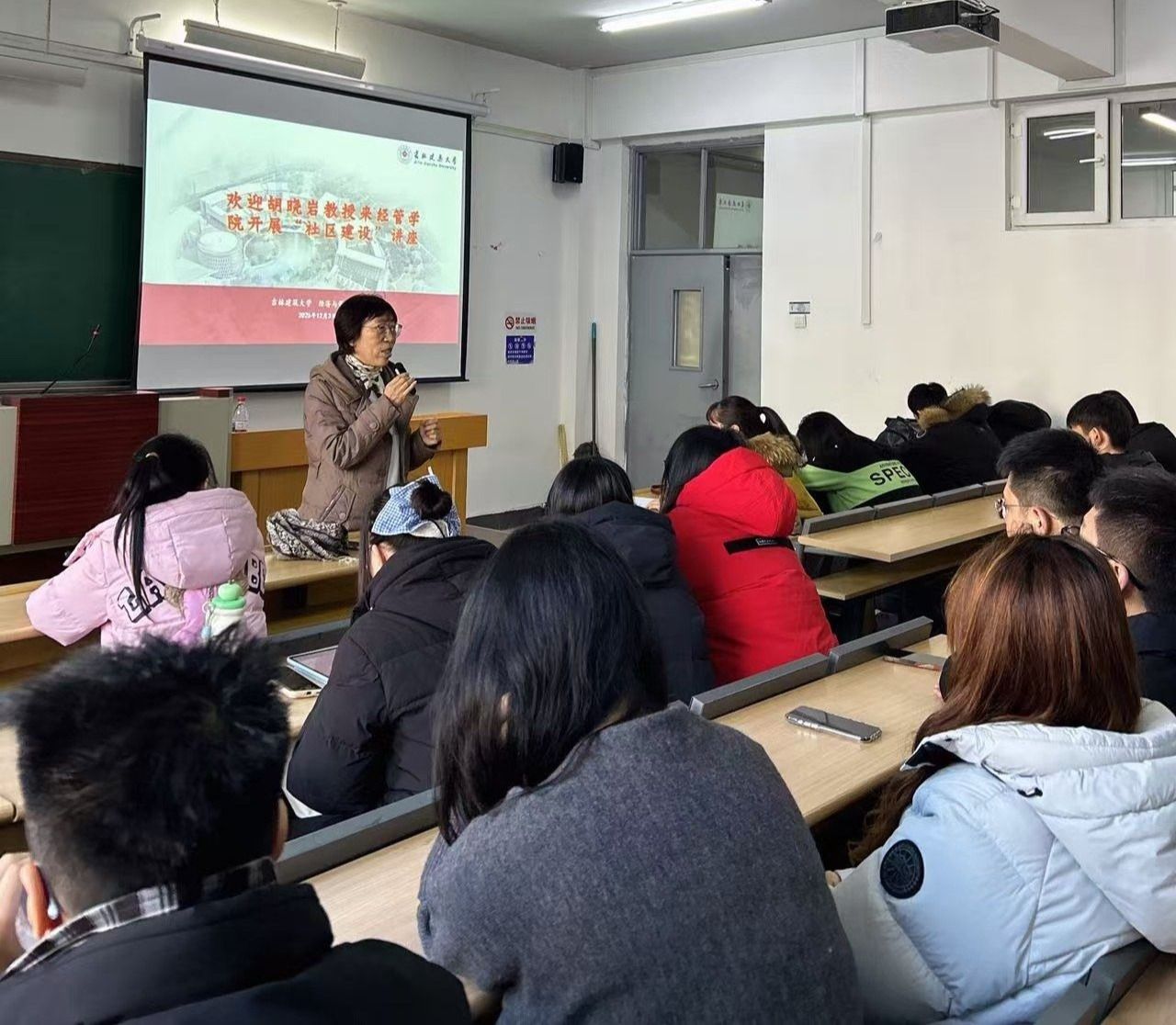 在互动交流环节,胡老师就同学们提出的关于社区韧性构建、技术与治理融合等热点问题给予了细致解答。现场互动热烈,同学们畅谈了对专业发展以及个人成长的期待。本次活动不仅拓宽了学生们的专业视野,也进一步激发了大家投身社区建设、服务基层社会的专业使命感。同时也为社工硕士与社工本科学生互相连接、共同学习,提供了一次良好机会。